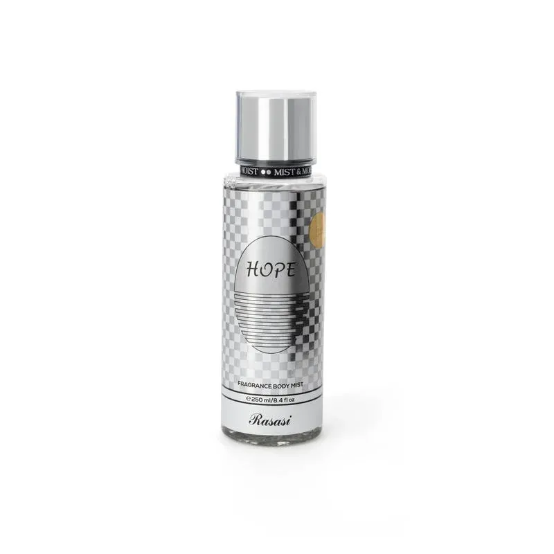 Rasasi Hope Body Mist 250ML – a refreshing floral fragrance that uplifts your mood with long-lasting elegance and daily freshness.