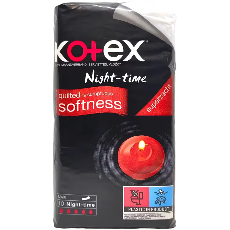 Kotex Maxi Pads Night Time 10-Pack – superior overnight protection, softness, and comfort for worry-free sleep and freshness.