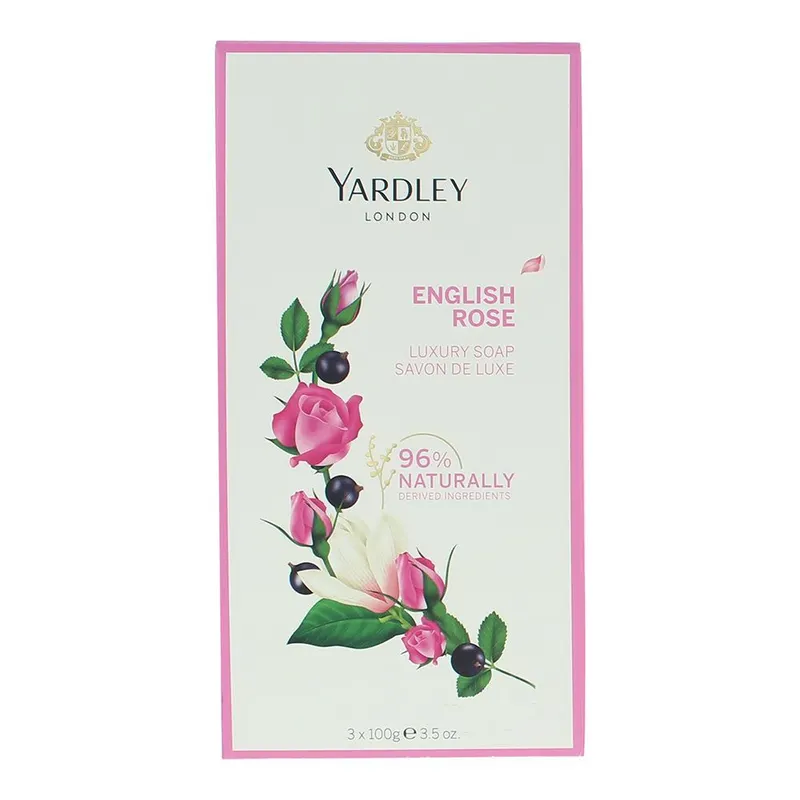 Experience the timeless elegance of Yardley London English Rose Luxury Soap. This pack of 3 (each 100g) features Yardley’s signature triple-milled process, creating a hard, long-lasting bar that produces a rich, creamy lather . Infused with a refreshing, light fresh floral fragrance featuring sparkling citrus and rose top notes blended with tea accord, combined with a complex floral heart of rose bud, magnolia, violet and cassis, and warm woody notes enhanced with patchouli and musks . Containing revitalising rose water and moisturising sustainable shea butter, it is finely milled for a luxurious lather that leaves your skin feeling clean, soft, smooth and delicately fragranced . Made with 97% naturally-derived ingredients and responsibly-sourced palm oil, this Luxury Soap is suitable for vegans and is cruelty-free . The gentle formula lathers easily to remove dirt, oil, and impurities without causing dryness or irritation, making it suitable for daily use on all skin types . Elevate your daily bathing ritual with this classic British luxury. Order online in Pakistan with nationwide delivery from SFOMall.pk.